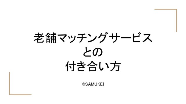 老舗マッチングサービス との 付き合い方 @SAMUKEI