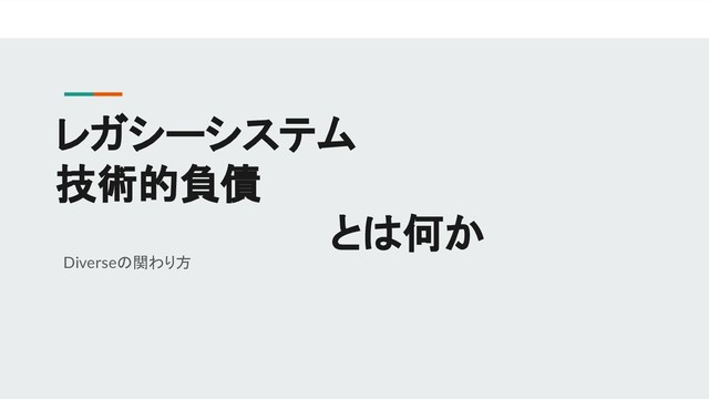 ということで、 Diverseがどのように レガシーシステム 技術的負債 という”課題”と向き合っているか を話します!