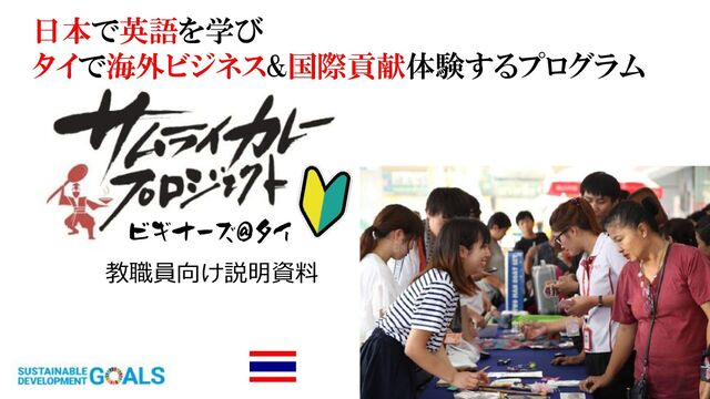 東京お台場の東京グローバルゲートウェイで2日の研修を受けた後、タイ・バンコクで海外ビジネス体験を行うプログラムの教職員説明資料です。