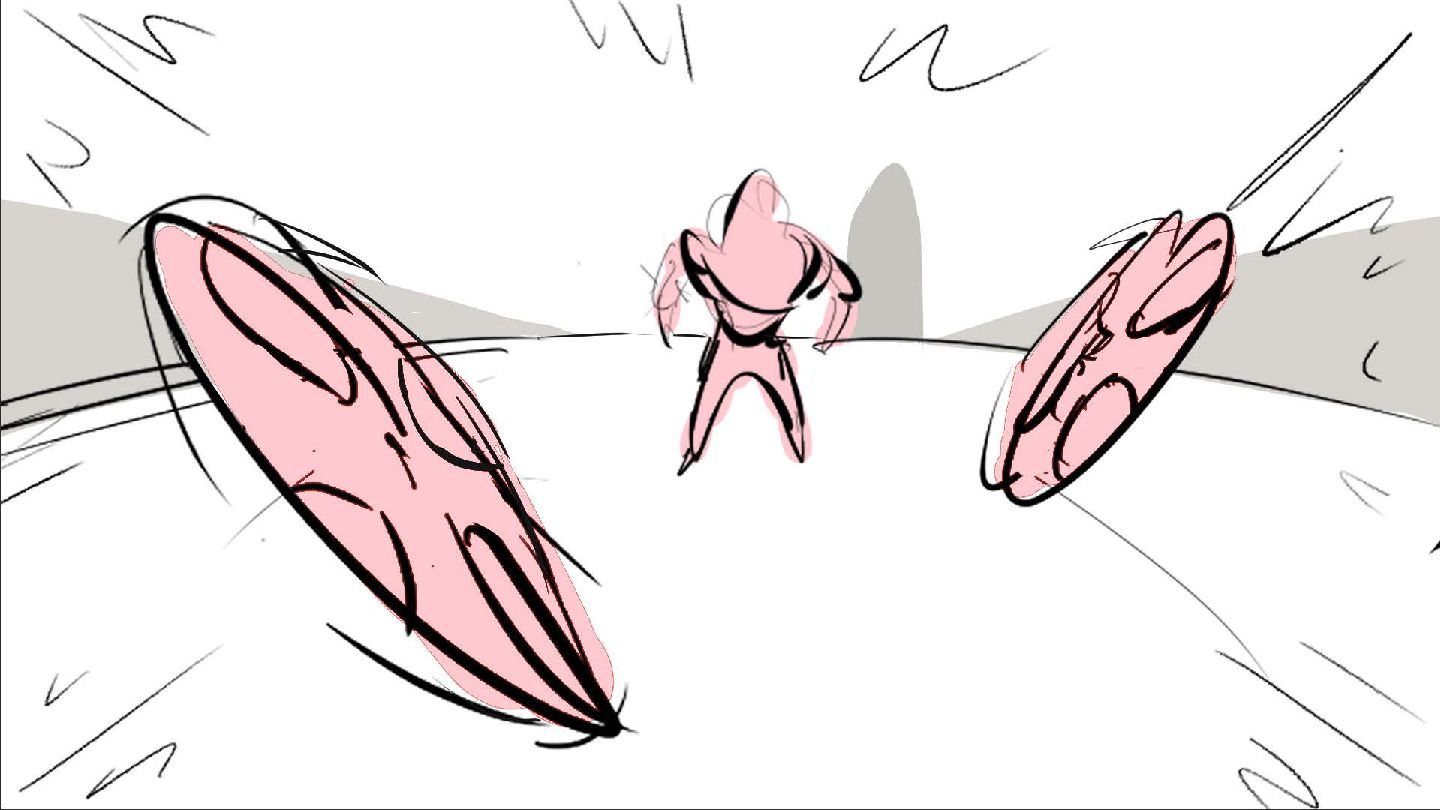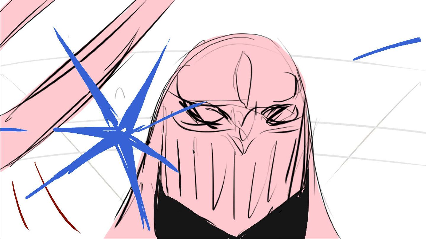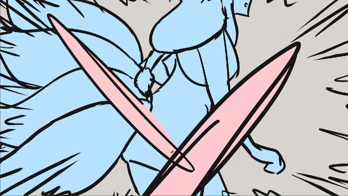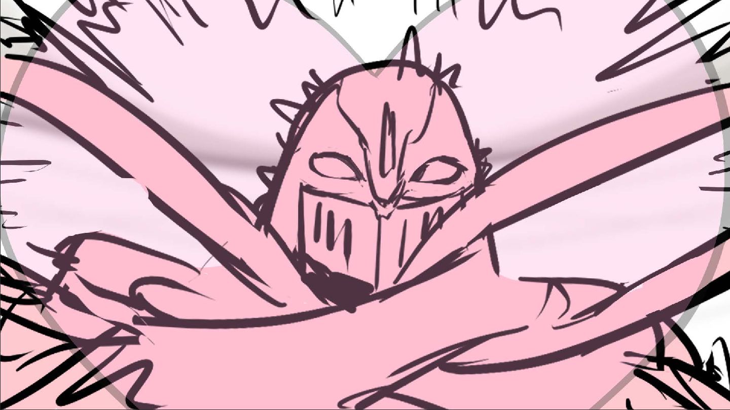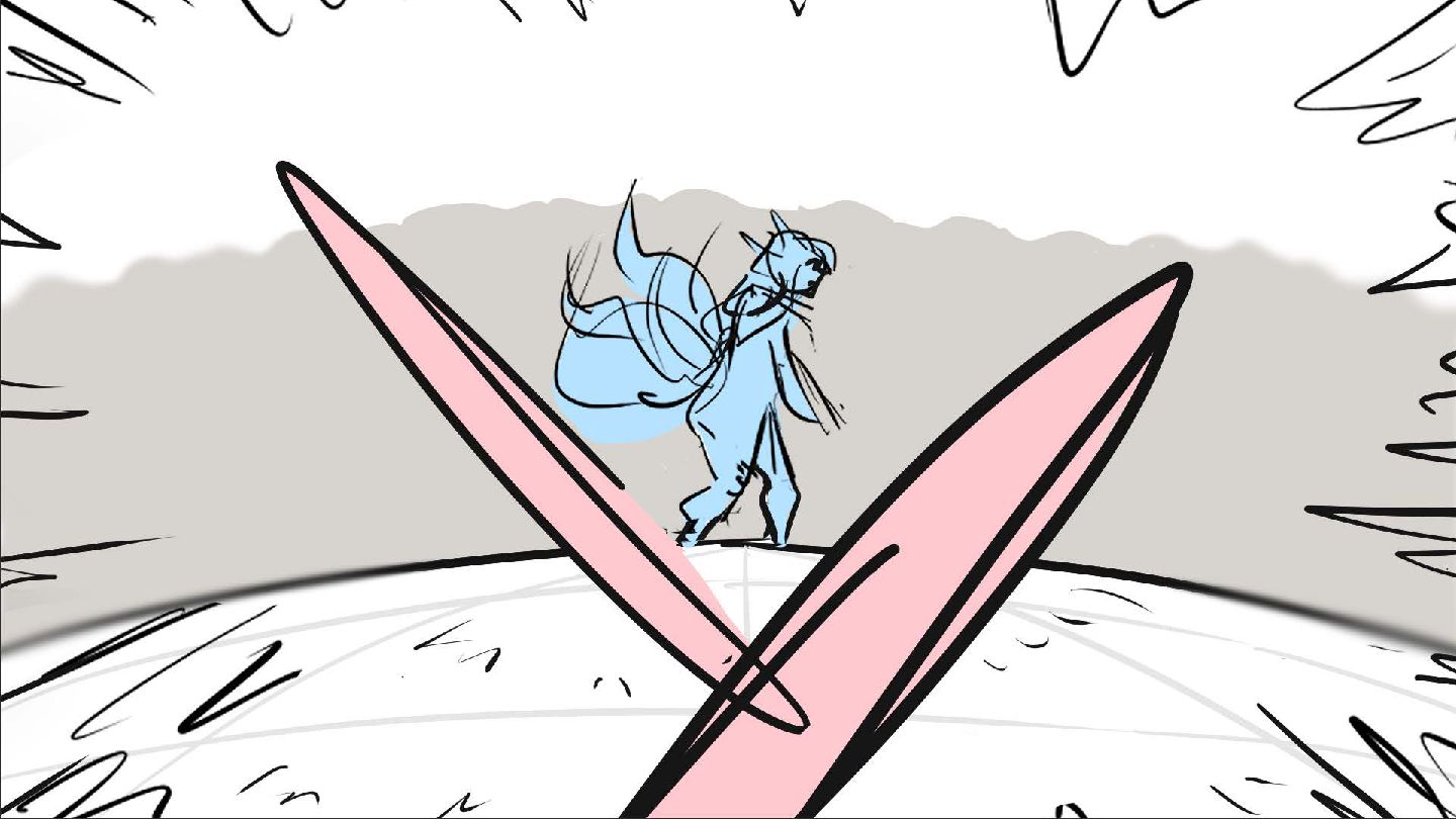 Action storyboard of a battle between two characters from Riot Games' world of Runeterra