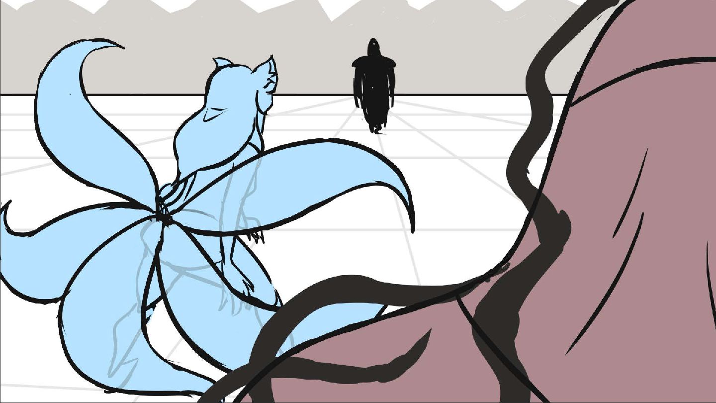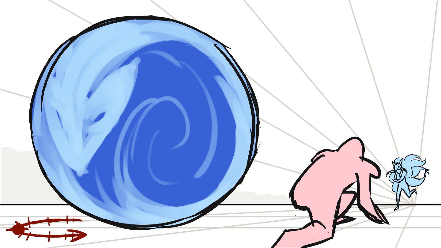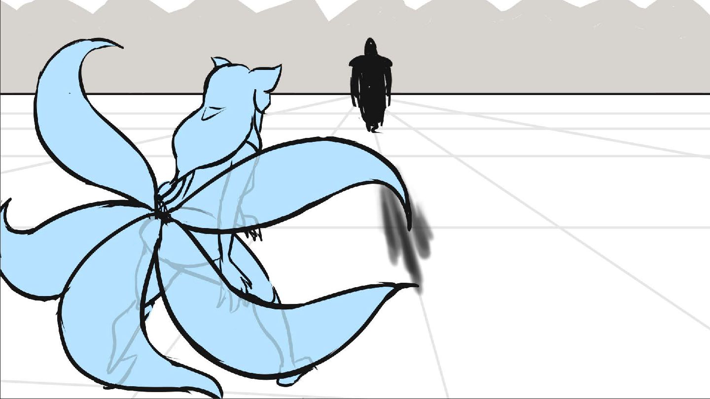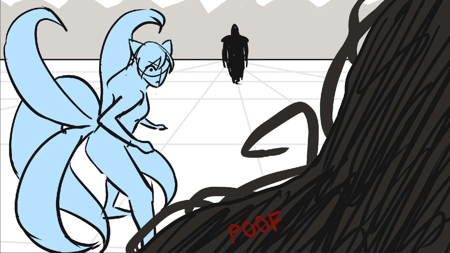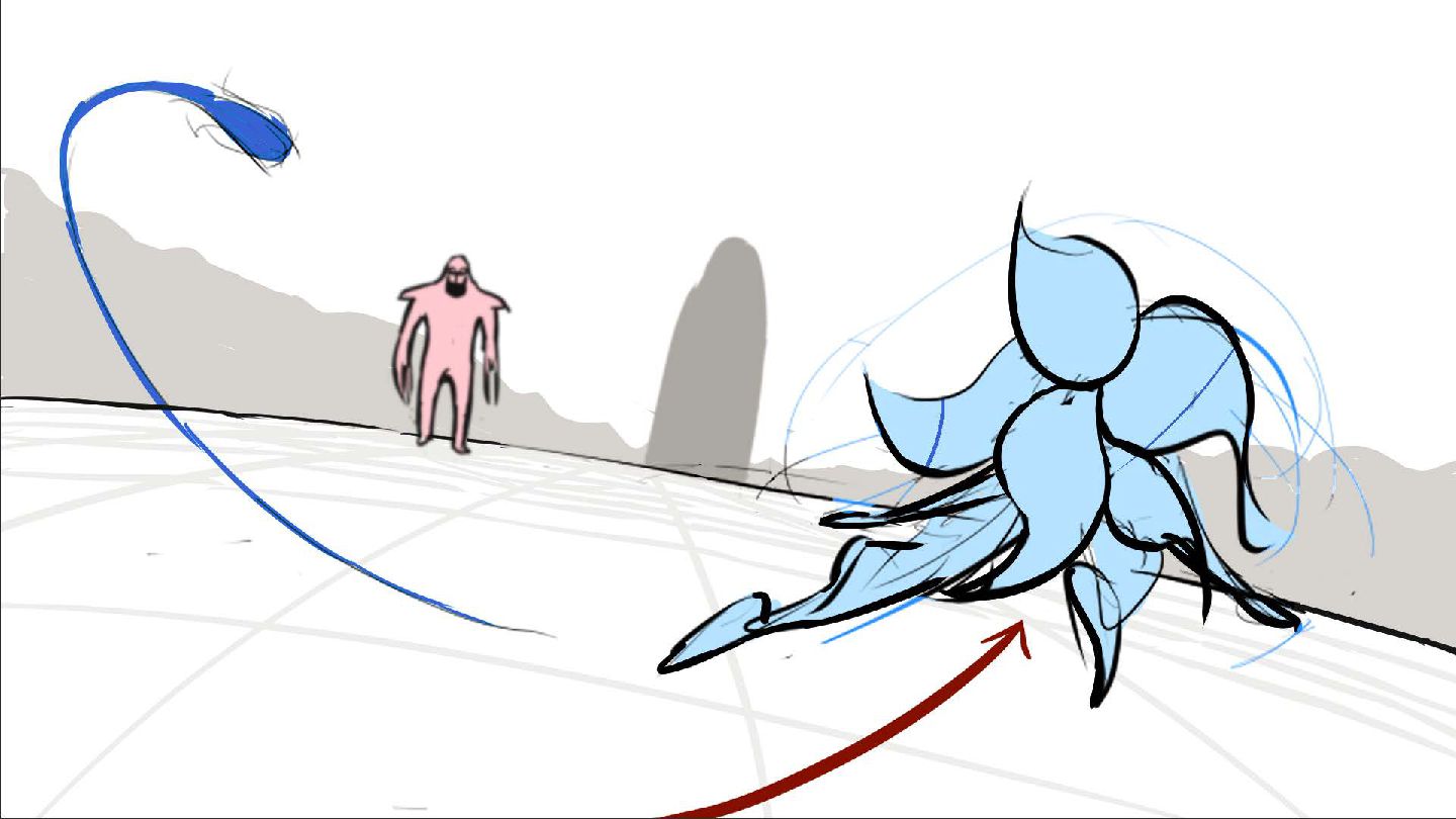Action storyboard of a battle between two characters from Riot Games' world of Runeterra