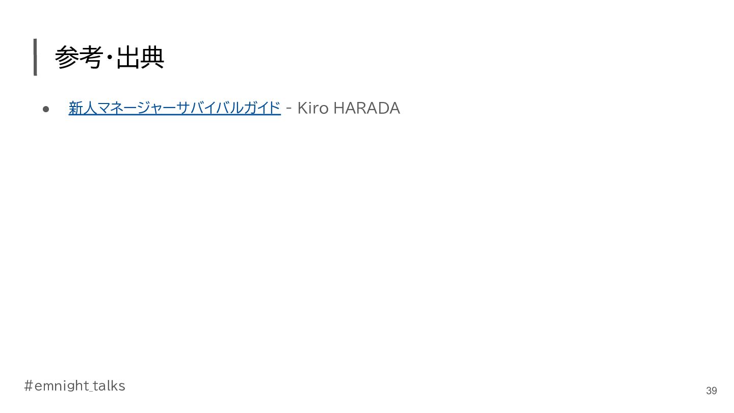 ■参考リンク 新人マネージャーサバイバルガイド - Kiro HARADA https://hub.attractor.co.jp/slides/34