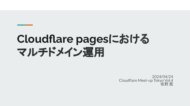 Cloudflare pagesにおける マルチドメイン運用 2024/04/24 Cloudflare Meet-up Tokyo Vol.4 佐野 鷹