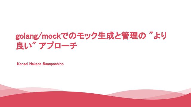 Kensei Nakada @sanposhiho golang/mockでのモック生成と管理の "より 良い" アプローチ