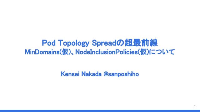 Pod Topology Spreadの超最前線 MinDomains(仮)、NodeInclusionPolicies(仮)について Kensei Nakada @sanposhiho 1