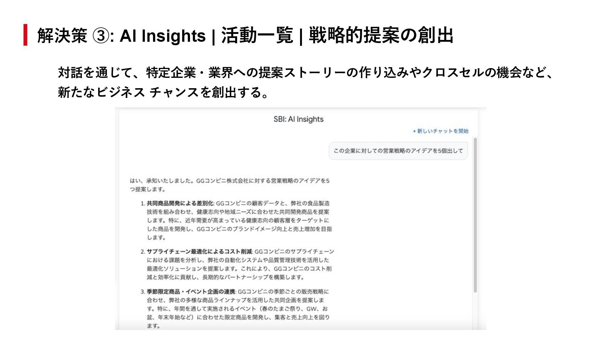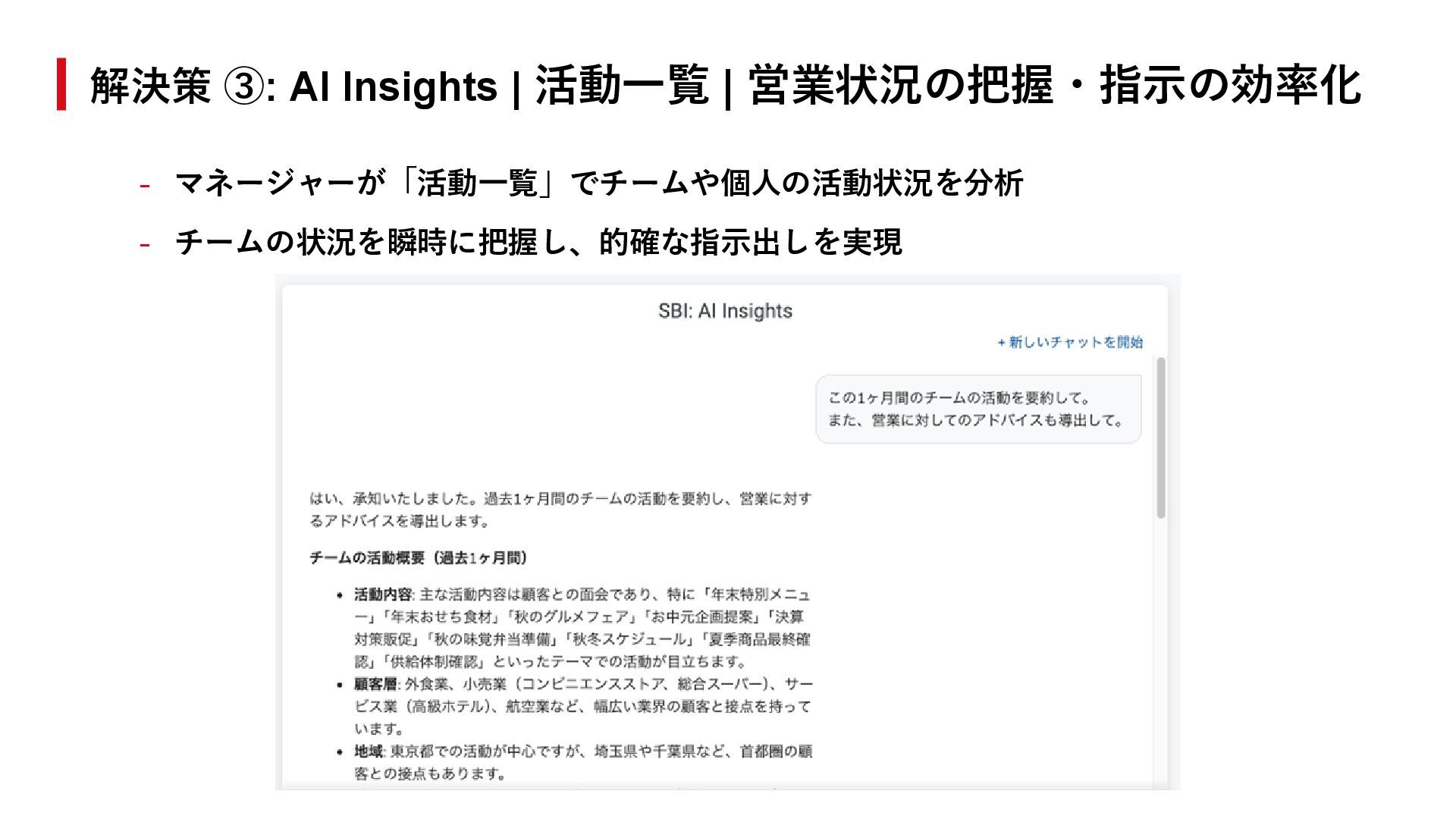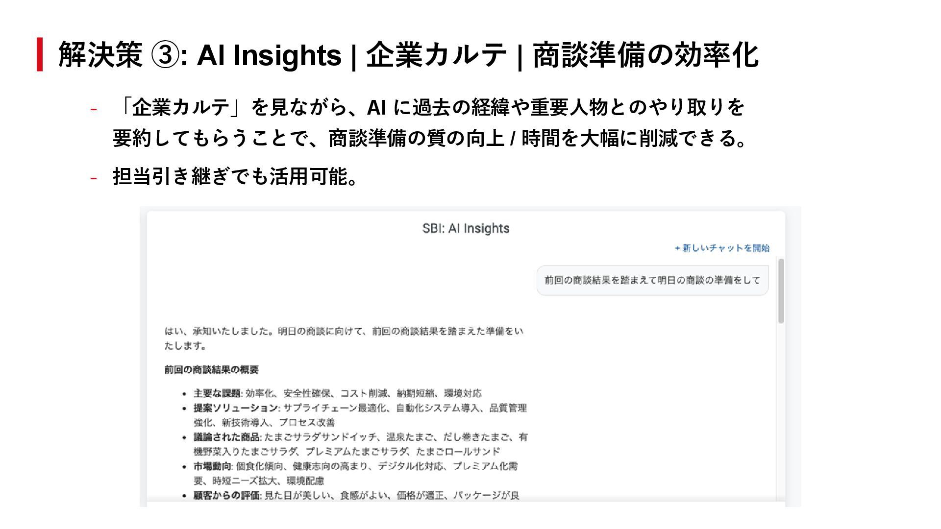 11. 解決策 ③: AI Insights | 企業カルテ | 商談準備の効率化 - 「企業カルテ」を見ながら、AI