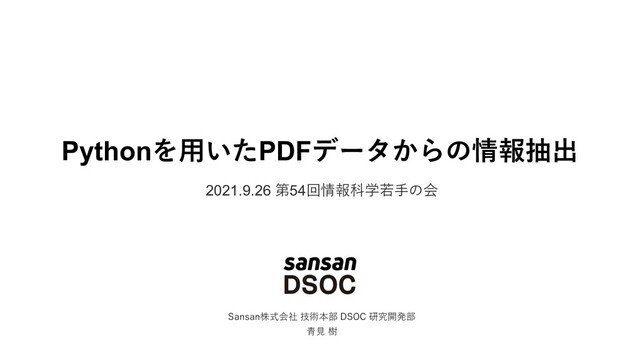 ■登壇概要 タイトル:Pythonを用いたPDFデータからの情報抽出 / Extraction data from PDF using Python 発表者: 技術本部 DSOC R&D研究員 青見 樹