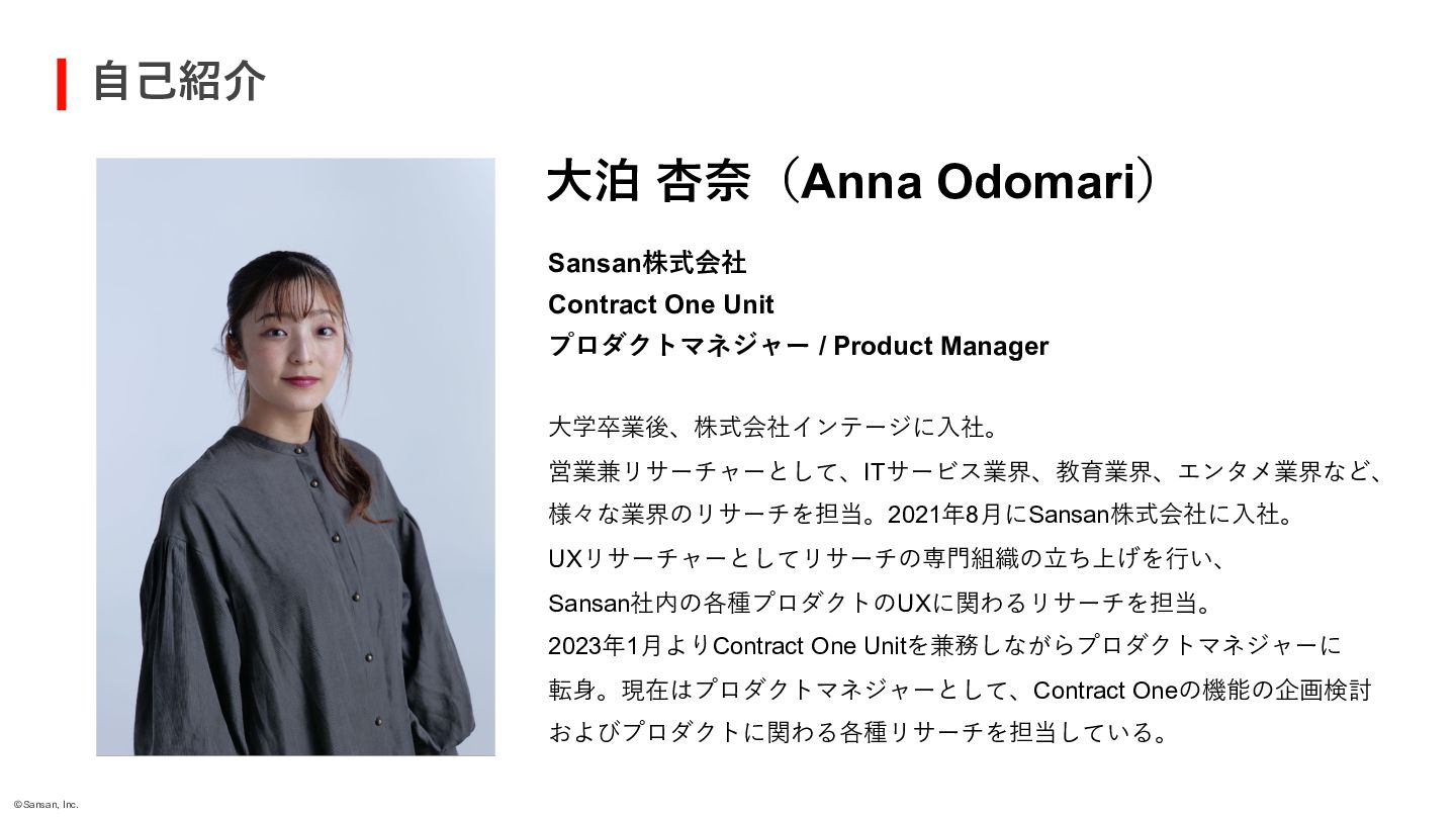 ■ 発表者 Contract One Unit プロダクトグループ 大泊 杏奈