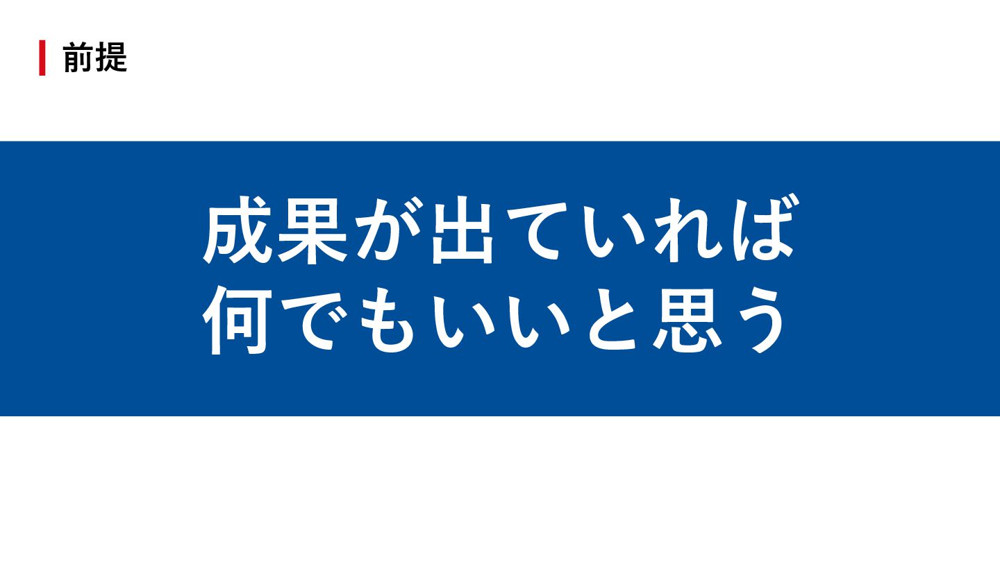 リリース前の 追い込み 成⻑志向の⼈ ⾃⾝の出⼒を⾃覚するのは難しい 笹川が考えるのは 80% 90% 100% 110% 120% 130% 頑張り⽅が ほぼ⾃明 定常的に 出せない 117%が最も ちょうどいい
