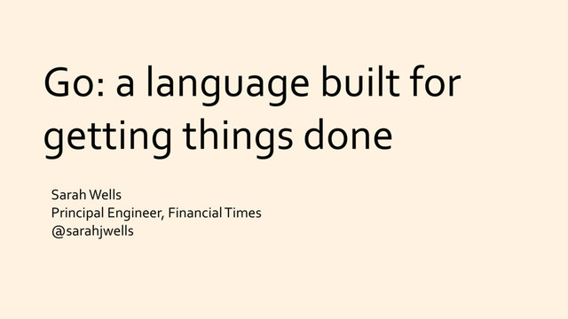1. Go: a language built for getting things done Sarah Wells
