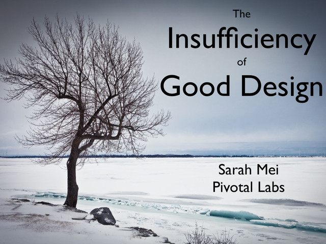 For Confreaks to help with video processing. Deck with notes, suitable for reading, is here: https://speakerdeck.com/sarahmei/the-insufficiency-of-good-design