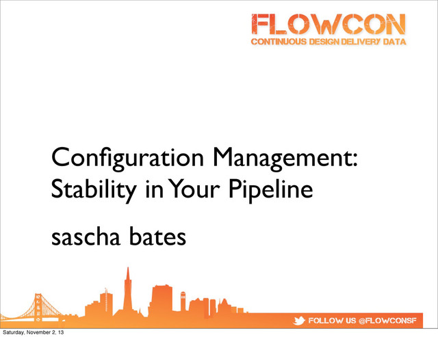 Configuration Management: Stability in Your Pipeline sascha bates Saturday, November