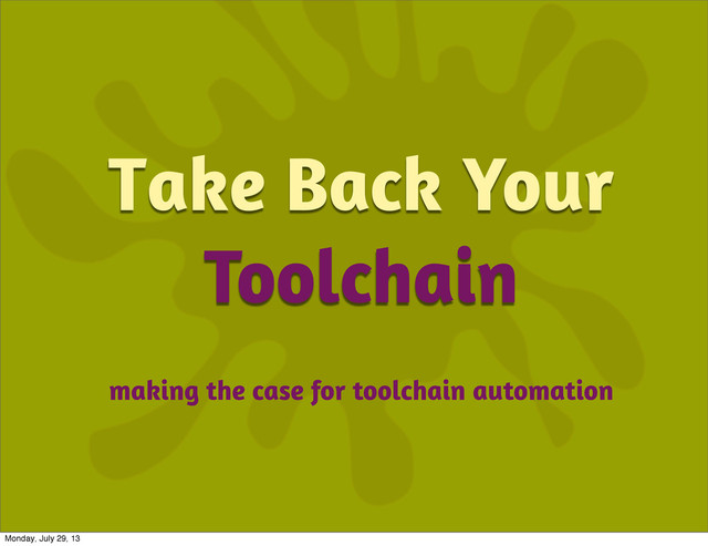 a new hire you spill water on your laptop laptops get upgraded RVM takes a nosedive you help a new hire when you write the wiki page the new hire horks their env you start a new project updating the outdated wiki Monday, July 29, 13