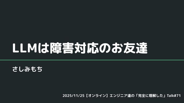 LLMは障害対応のお友達 さしみもち 2025/11/25【オンライン】エンジニア達の「完全に理解した」Talk#71