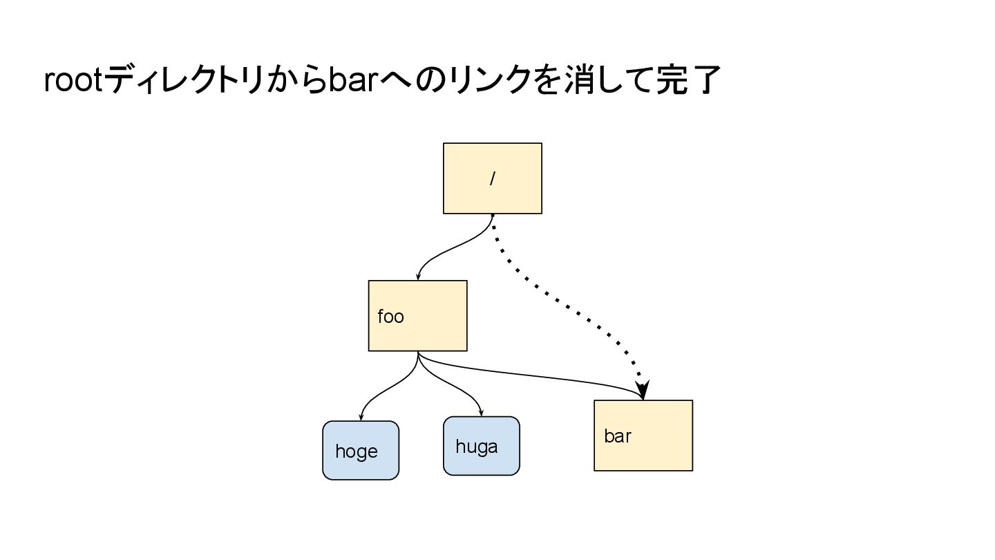 rootディレクトリからbarへのリンクを消して完了 / foo bar huga hoge