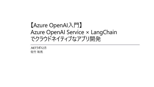 【Azure OpenAI⼊⾨】 Azure OpenAI Service × LangChain でクラウドネイティブなアプリ開発 .NETラボ12⽉ 佐⽵