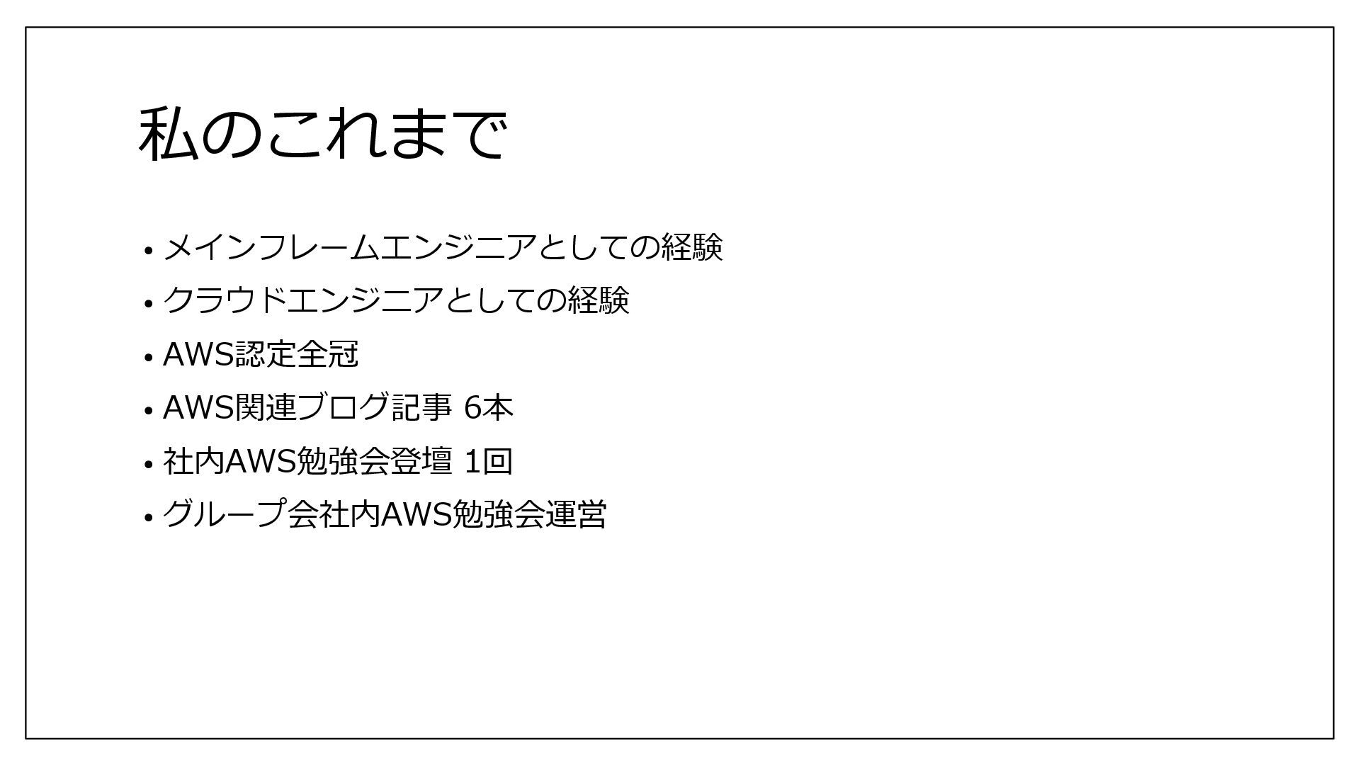 7. 私のこれまで • メインフレームエンジニアとしての経験 • クラウドエンジニアとしての経験 • AWS認定全冠 • AWS関連ブログ記事 6本