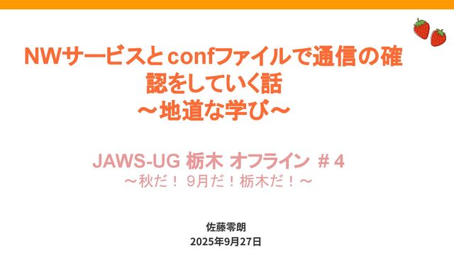 NWサービスと confファイルで通信の確 認をしていく話 〜地道な学び〜 JAWS-UG 栃木 オフライン # 4 〜秋だ!