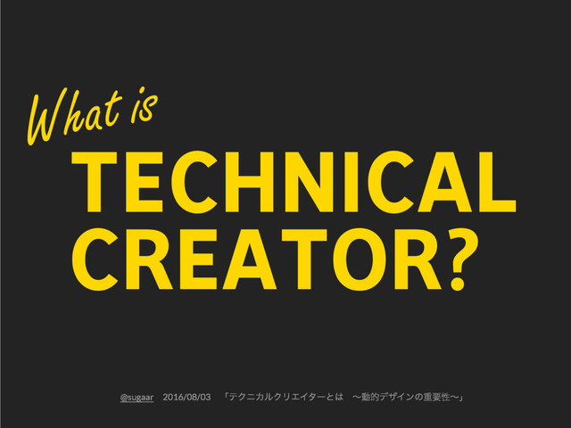 TECHNICAL CREATOR? @sugaarɹ2016/08/03ɹʮςΫχΧϧΫϦΤΠλʔͱɹʙಈతσβΠϯͷॏཁੑʙʯ What is