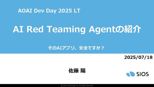 © SIOS Technology Inc. All rights Reserved. そのAIアプリ、安全ですか? AI Red