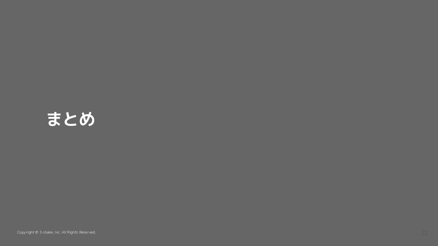 まとめ Copyright © 3-shake, Inc. All Rights Reserved. 22
