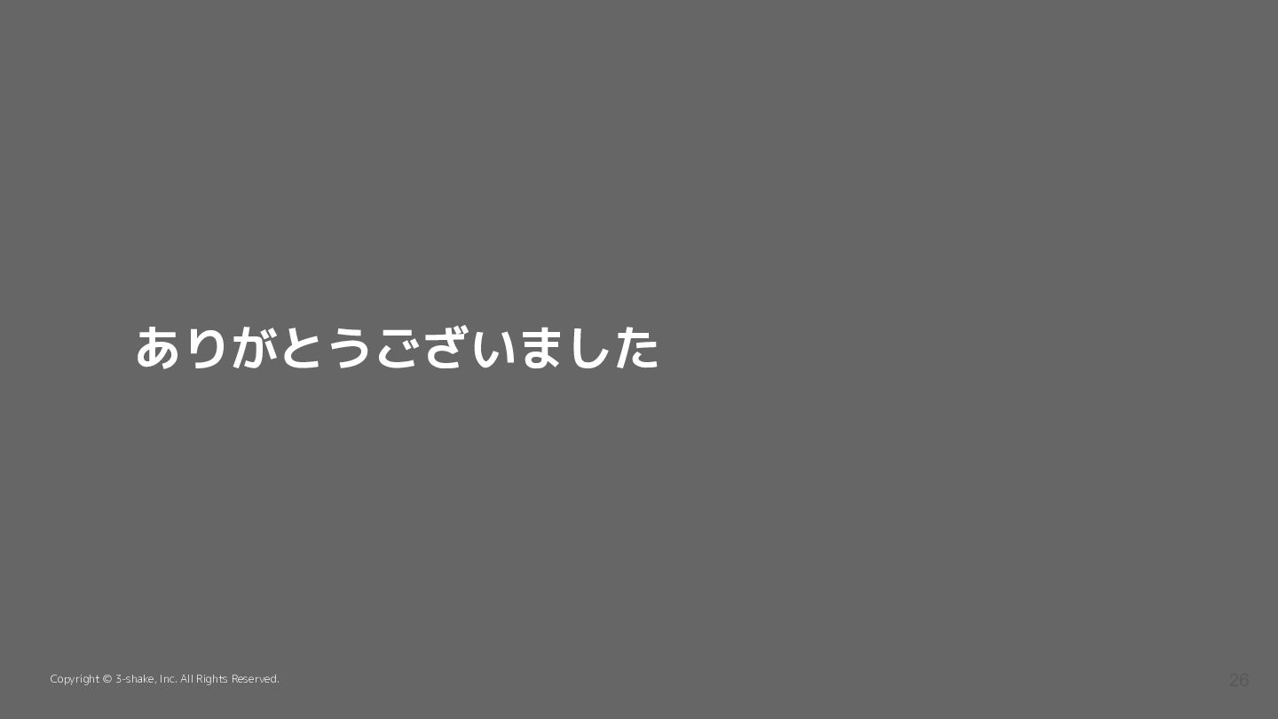 ありがとうございました Copyright © 3-shake, Inc. All Rights Reserved. 26
