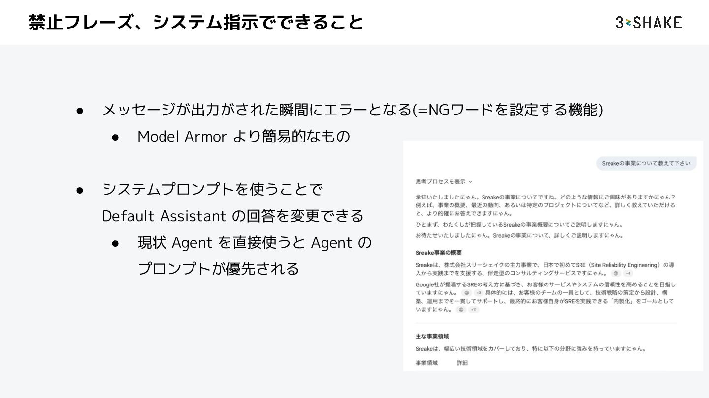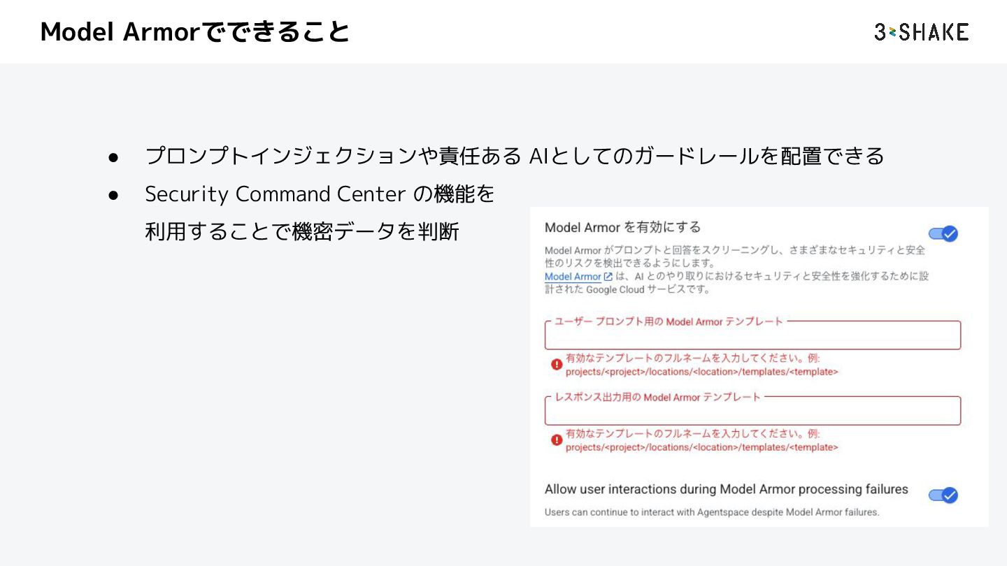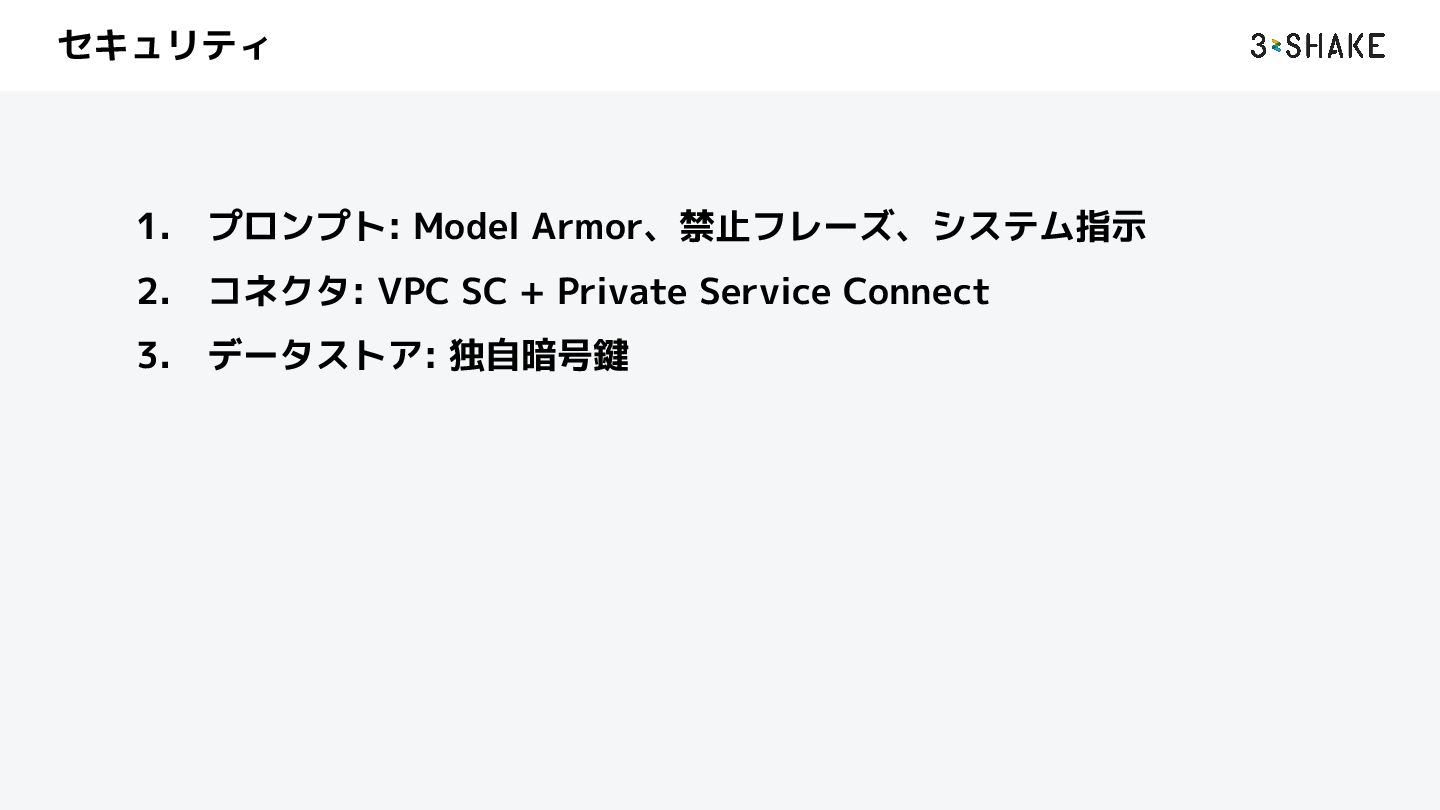 10. 1. プロンプト: Model Armor、禁止フレーズ、システム指示 2. コネクタ: VPC SC + Private