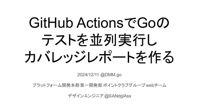 GitHub ActionsでGoの テストを並列実行し カバレッジレポートを作る 2024/12/11 @DMM.go プラットフォーム開発本部 第一開発部 ポイントクラブグループ webチーム