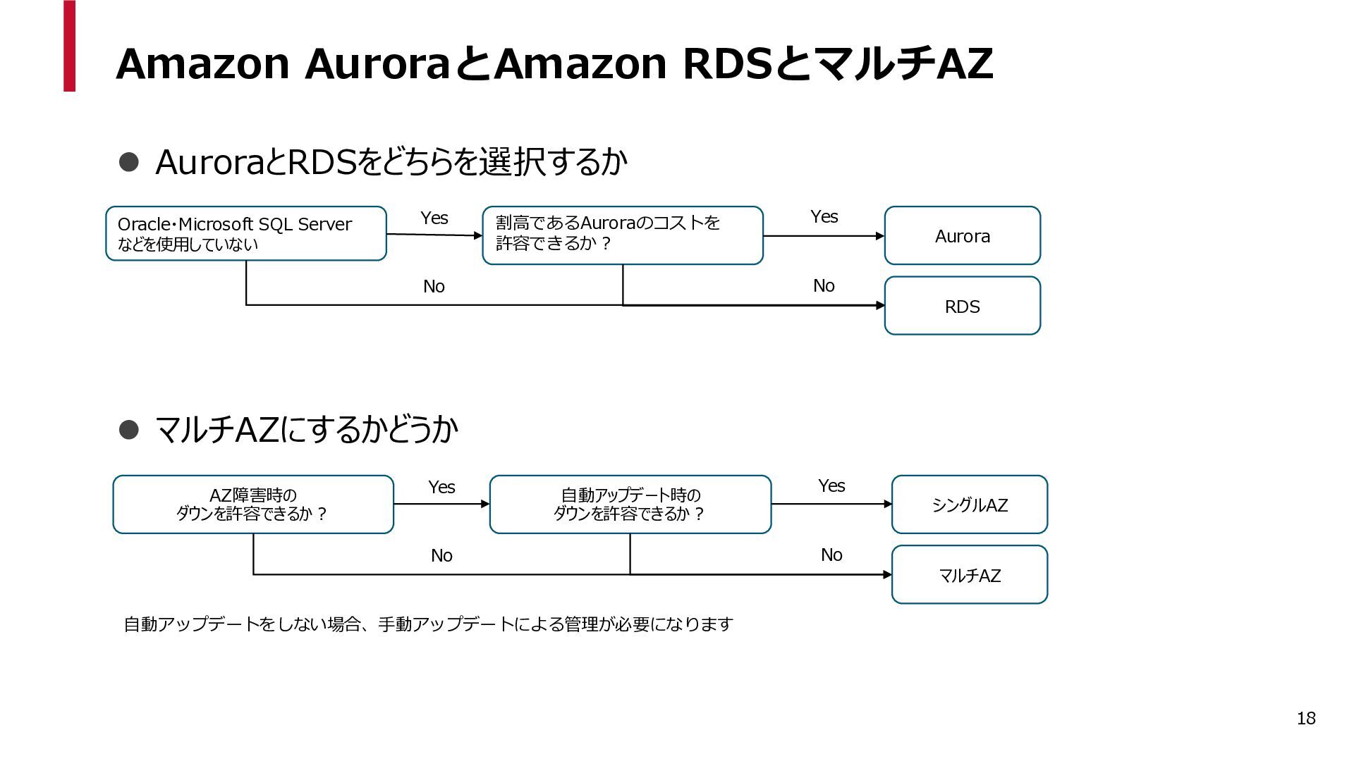 11. 18 Amazon AuroraとAmazon RDSとマルチAZ Oracle・Microsoft SQL Server などを使用していない 割高であるAuroraのコストを 許容できるか?