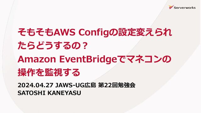 そもそもAWS Configの設定変えられ たらどうするの? Amazon EventBridgeでマネコンの 操作を監視する 2024.04.27 JAWS-UG広島 第22回勉強会 SATOSHI