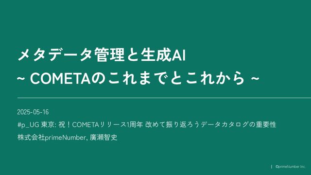 ©primeNumber Inc. メタデータ管理と生成AI ~ COMETAのこれまでとこれから ~ 2025-05-16 #p_UG 東京: 祝!COMETAリリース1周年