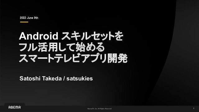 1 Android スキルセットを フル活用して始める スマートテレビアプリ開発 2022 June 9th Satoshi Takeda / satsukies