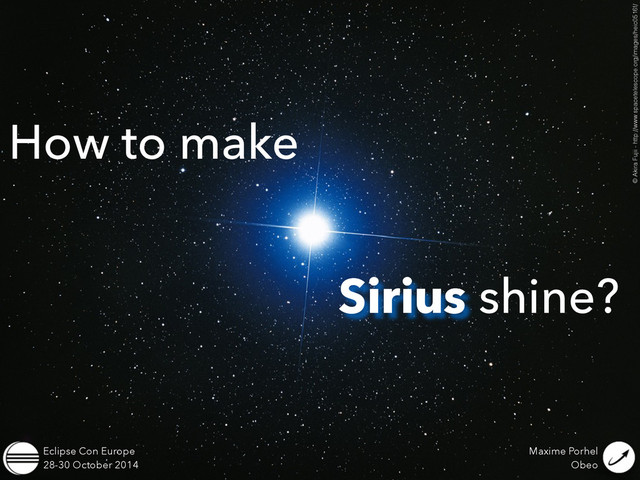 architecture of Sirius to be able to use the editor without anything else • Eclipse integration • Sirius customization • Open source contribution (git, gerrit, etc)