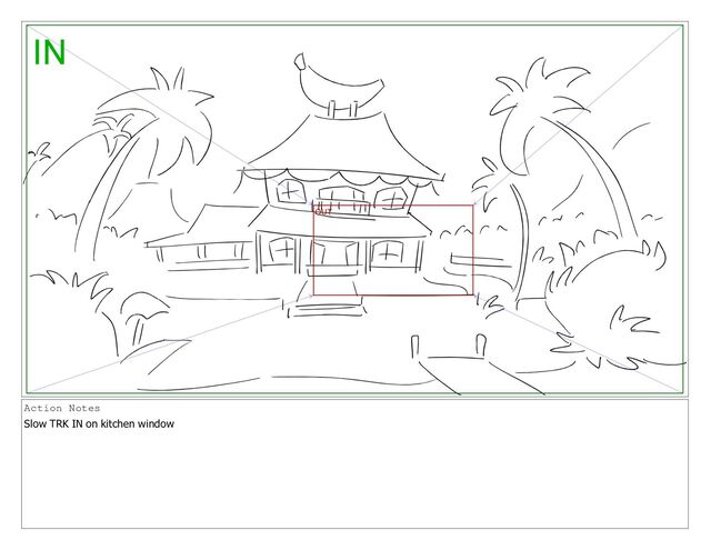 Action Notes Slow TRK IN on kitchen window
