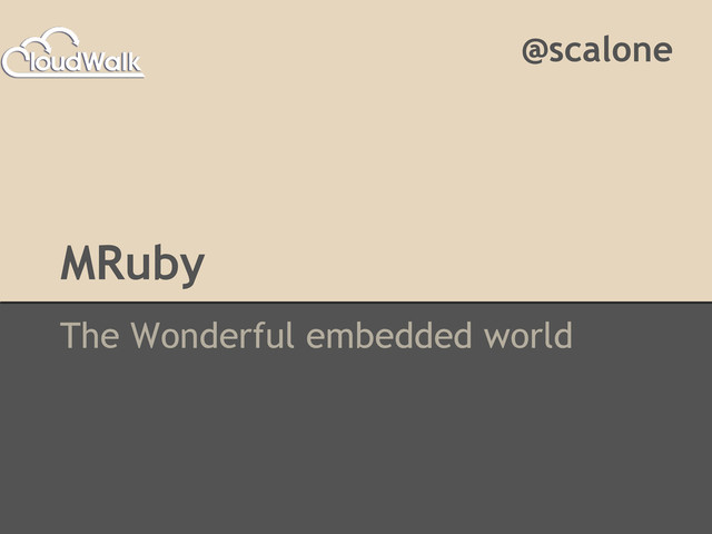 MRuby github.com/mruby/mruby merbist.com (Matt Aimonetti) https://github. com/mruby/mruby/blob/master/doc/mrbg ems/README.md @scalone