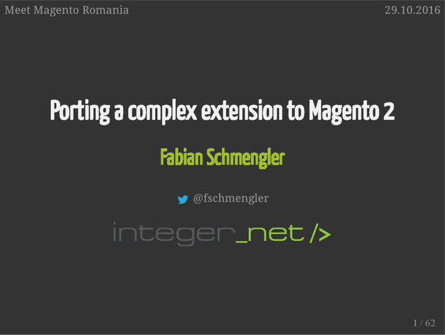 files Don't use them for actual code Unirgy ConvertM1M2: https://github.com/unirgy/convertm1m2 Magento Code Migration (official): https://github.com/magento/code-migration 47 / 62