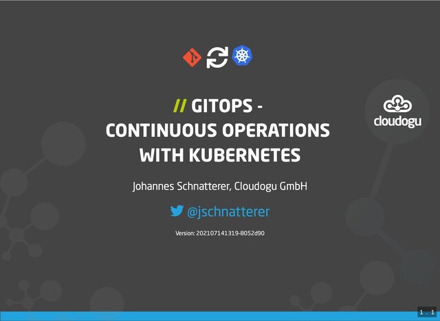 1. // GITOPS - CONTINUOUS OPERATIONS WITH KUBERNETES Johannes Schnatterer, Cloudogu