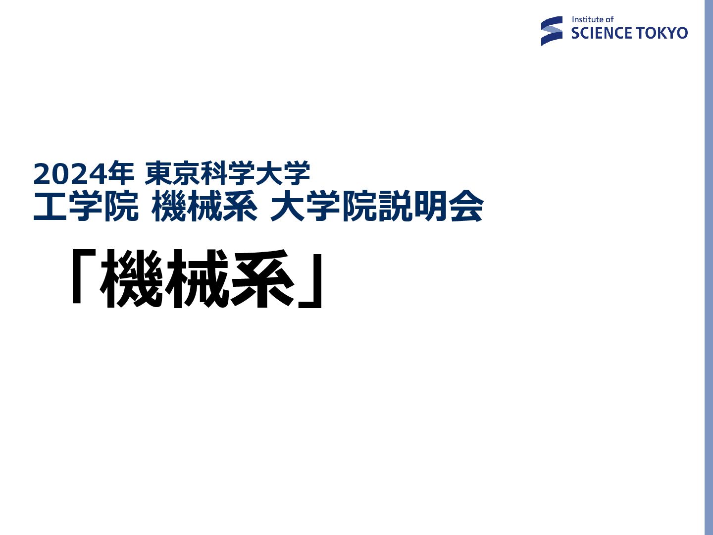 2024年 東京科学大学 工学院 機械系 大学院説明会 「機械系」