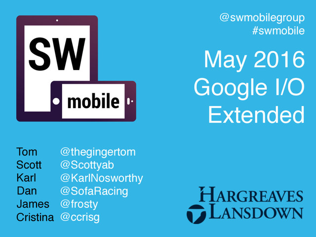 This is a sample of the intro slides from May 2016's SWmobile meetup. Published just to show the kinds of thing we include as part of our opening of the evening.