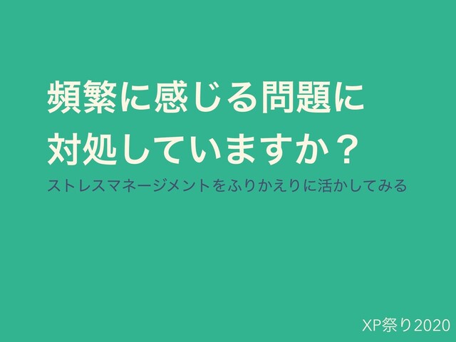 XP祭り2020のLTで発表した資料です。 ストレスマネージメントをふりかえりに活かすことを考えて、発表しました。