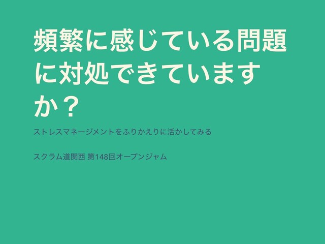 සൟʹײ͍ͯ͡Δ ʹରॲͰ͖͍ͯ·͢ ͔ʁ ετϨεϚωʔδϝϯτΛ;Γ͔͑Γʹ׆͔ͯ͠ΈΔ εΫϥϜಓؔ ୈ148ճΦʔϓϯδϟϜ