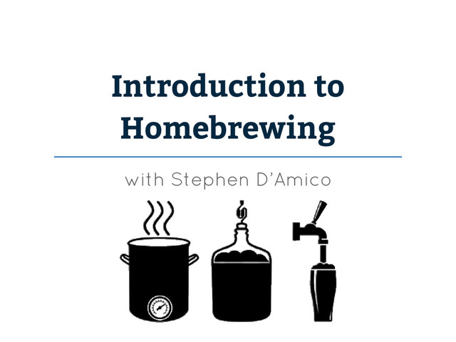 dried malt extract to the water ◦ Slowly is key, add it too quickly and I’ll guarantee that you’ll get a boil-over • Add water to ensure you’re at about 5.5 gallons of wort • Bring the wort to a boil • We’re going to boil for about 60 minutes, so...