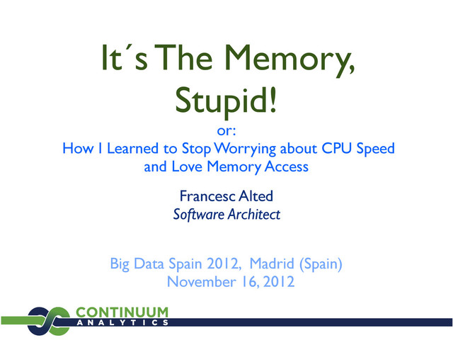 largely able to execute code faster than we can feed them with instructions and data.” – Richard Sites, after his article “It’s The Memory, Stupid!”, Microprocessor Report, 10(10),1996