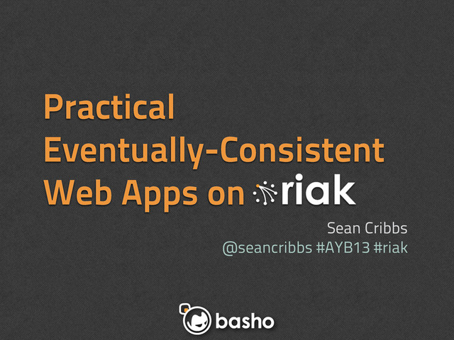 "Eventual consistency! Scalability! Schema-free!" is the rallying call of the NoSQL world. But what does it mean to be eventually-consistent, to be scalable, to be schema-free? Why should you, as a web developer, care? Let's demystify these terms and then explore some ways that Riak, an "eventually-consistent, scalable, schema-free" datastore, can be put to practical use in web applications. You might just find that you've been using eventual consistency all along!