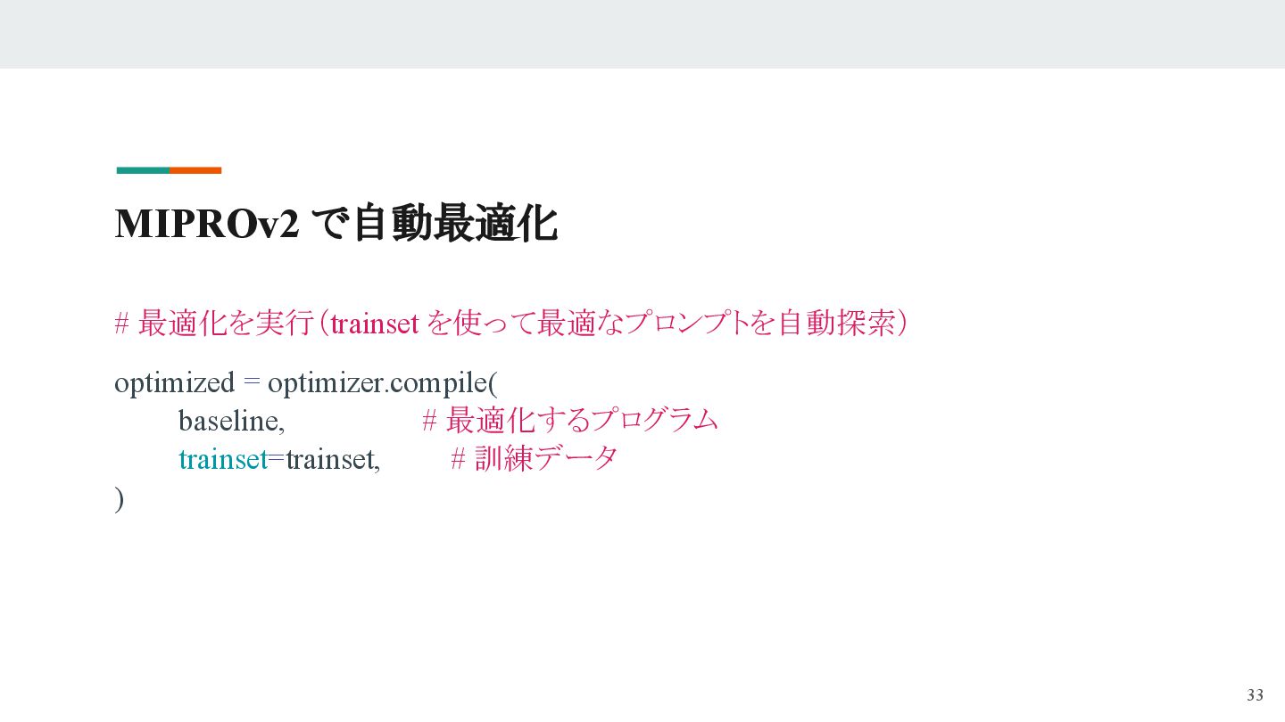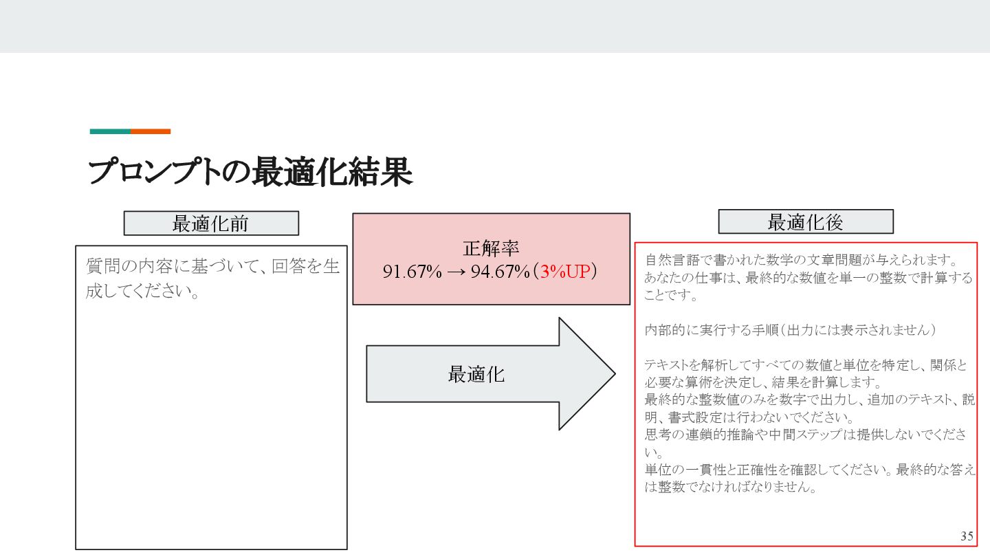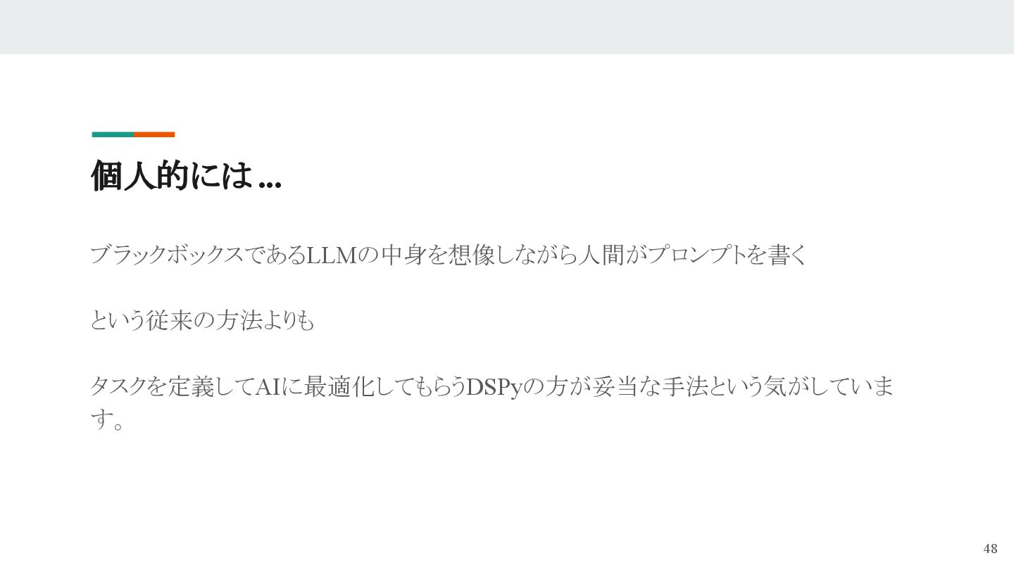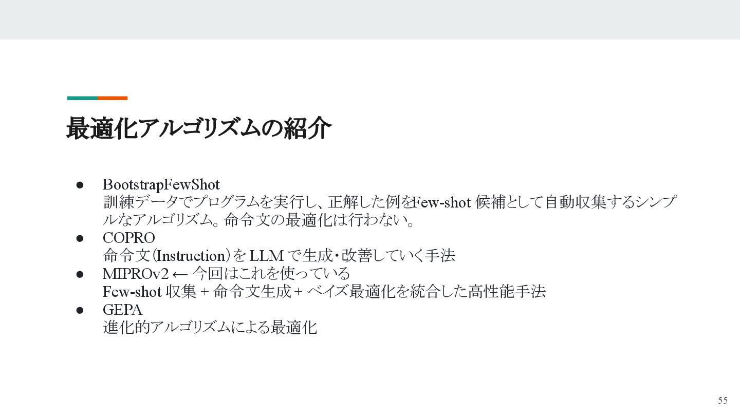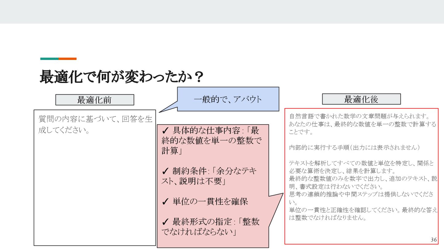 - DSPyが効率よく「最適なプロンプト」を探索し、人手不要で最適化