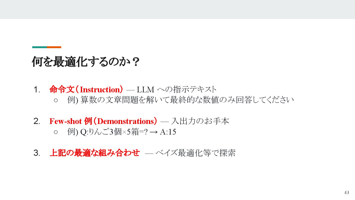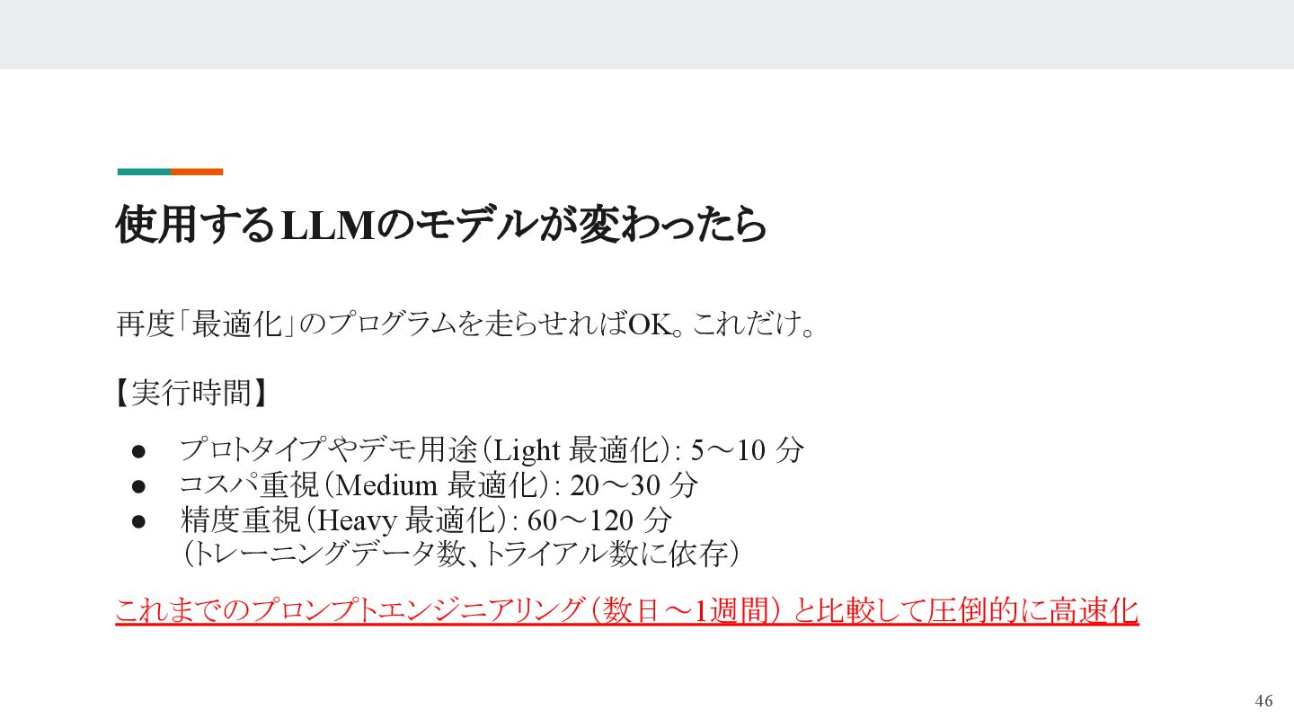 LLMのモデルやバージョン変更の際のプロンプト調整に疲弊した結果、自動でプロンプト最適化がこれから盛り上がっていくことを感じ、本トークでは以下の内容をお伝えします。