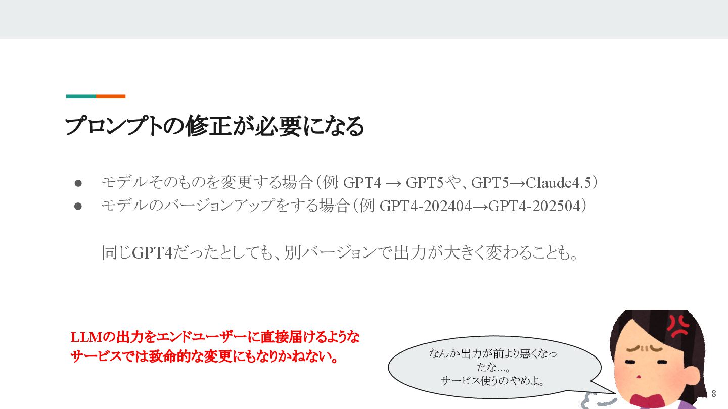 LLMサービスの現場では、GPT-4/5やClaude、Geminiなどモデル/バージョンの切替が急速に発生
