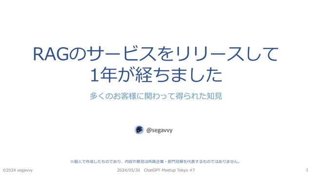 2024年5月30日に開催されたChatGPT Meetup Tokyo #7で、ChatGPTとIBM Watson Discoveryを連携させたRAGのサービスについてLTした際の資料です。