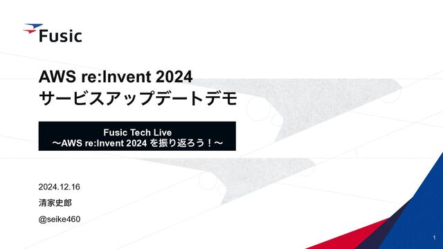 ©Fusic Co., Ltd. 1 AWS re:Invent 2024 αʔϏεΞοϓσʔτσϞ 2024.12.16 @seike460