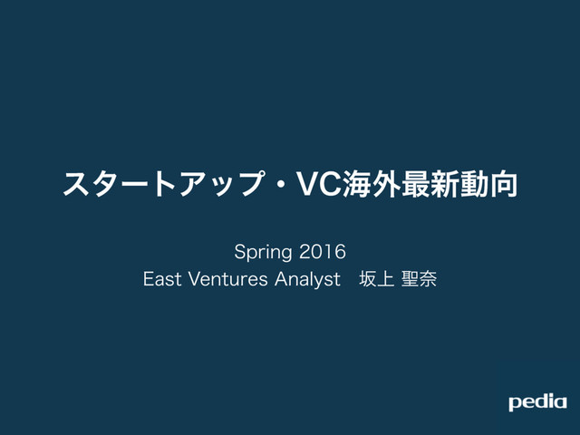 Pedia News( https://news.thepedia.co/ )は、スタートアップとベンチャーキャピタル(VC)のためのニュースメディアです。登壇資料は2016年5月7日(土)に行われたNTVP主催の「VC養成セミナー」にて紹介させていただいたものです。今回、米国のスタートアップとベンチャーキャピタルについて①ベンチャー投資状況、②ユニコーン企業動向、③最新ユニコーン起業の三点からご紹介しています。